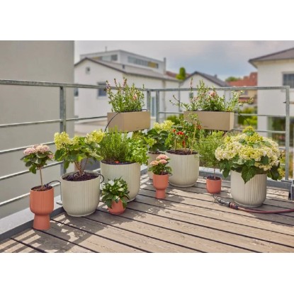 Pomocou GARDENA súpravy pre balkónové kvapkové zavlažovanie budete zavlažovať svoje balkónové rastliny spoľahlivo a s úsporou vody. Súprava Micro-Drip-System je ideálna pre zásobovanie vodou až 15 jednotlivých rastlín v kvetináčoch alebo rastlín v kvetináčoch a kvetináčoch s výškovým rozdielom.