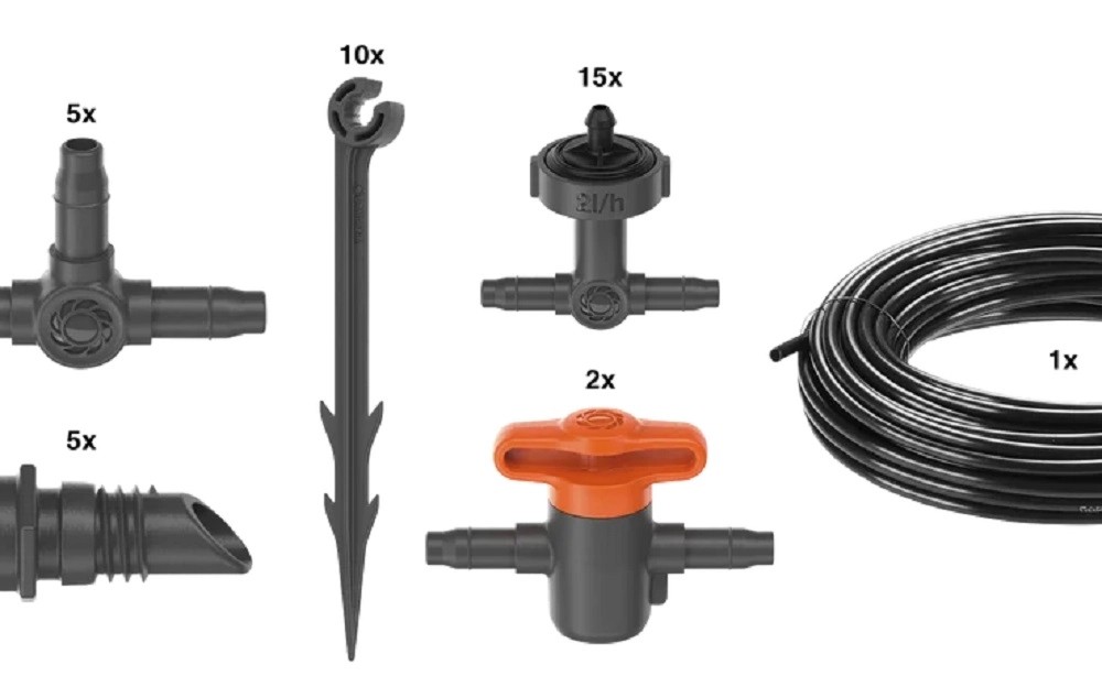 Všetky potrebné komponenty sú súčasťou súpravy na okamžité použitie a môžete ju nainštalovať v niekoľkých jednoduchých krokoch. Vďaka jedinečnej technológii pripojenia Easy & Flexible je možné Micro-Drip-System kedykoľvek rýchlo premeniť alebo rozšíriť. Používajte radové kvapkače flexibilne v kvetináčoch a ako koncové kvapkače pre jednotlivé rastliny v kvetináčoch.