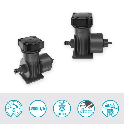 Základný prístroj 2000 značky GARDENA je východiskovou súčasťou GARDENA Micro-Drip-systému. Spoľahlivo znižuje tlak vody na cca 1,5 baru. Základný prístroj privádza vodu do systému na optimálne využitie všetkých kvapkačov, postrekovačov a trysiek pripojených k systému GARDENA Micro-Drip. S prietokom vody cca 2000 litrov za hodinu predstavuje ideálny spôsob zavlažovania.