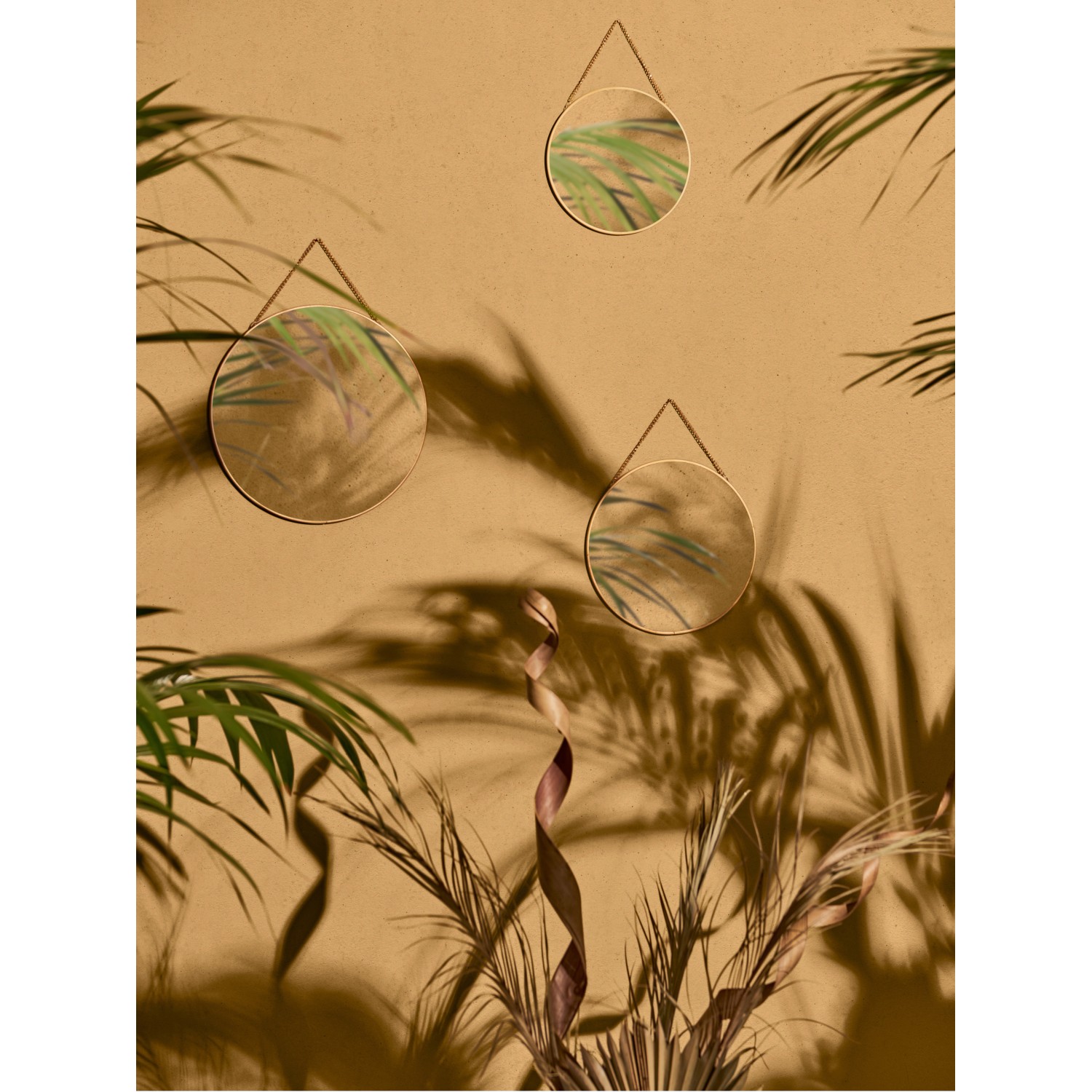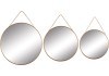 3-dielna súprava nástenných zrkadiel z trendovej kolekcie Safari Lodge sa stane dekoratívnym prvkom v chodbe alebo v obývačke/jedálni. Moderné zrkadlá majú okrúhly tvar a sú vyhotovené v rôznych veľkostiach. Môžete ich umiestniť samostatne alebo v kombinácii. Disponujú kovovým rámom zlatej farby. Vďaka kompaktným rozmerom 29 cm, 24 cm a 20 cm v priemere zaberajú len málo plochy na stene. Jednoduchá montáž na stenu sa realizuje pomocou reťazí zlatej farby, ktoré má každé zrkadlo.
