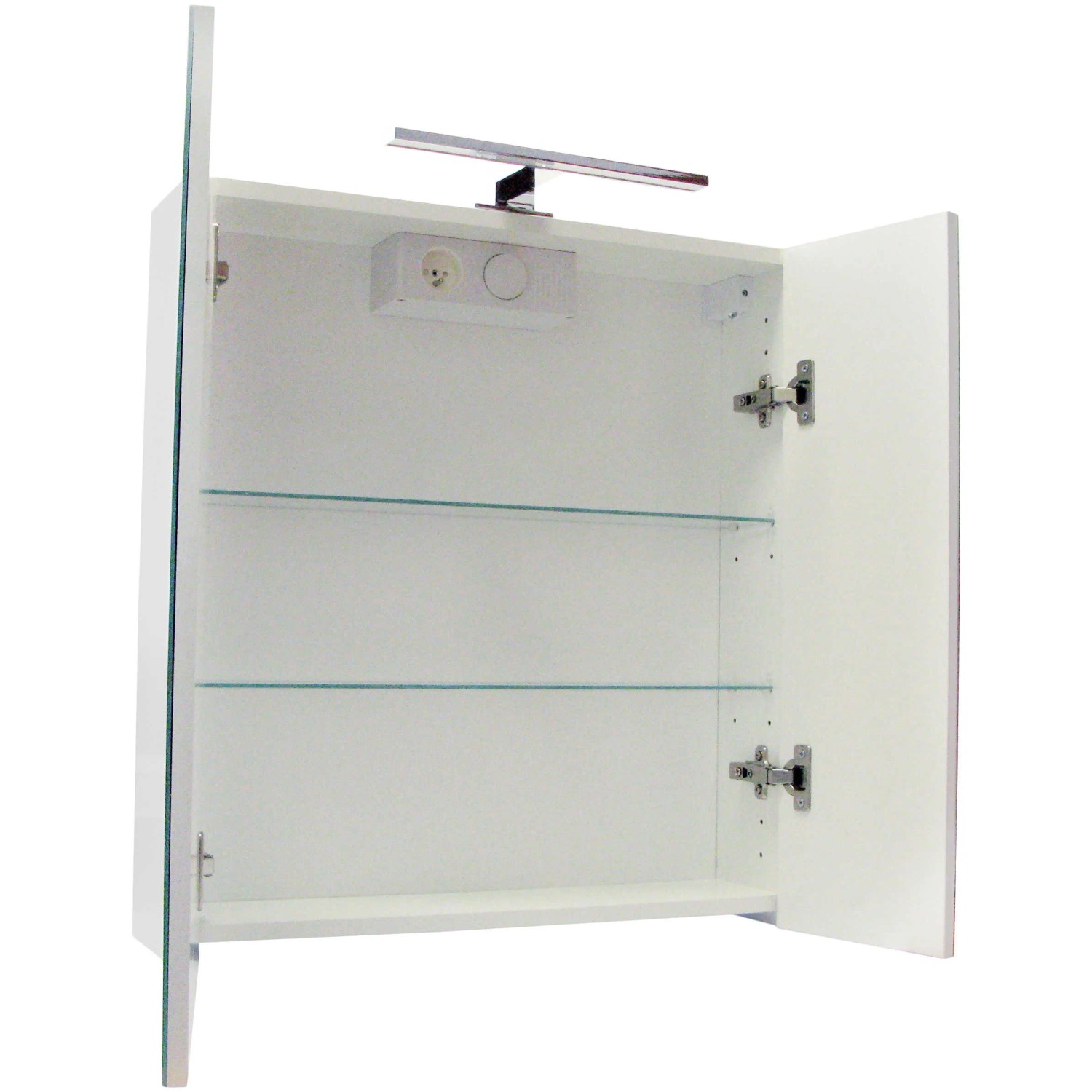 Zrkadlová skrinka Lucas ZS 60. Dvojdverová zrkadlová skrinka s LED osvetlením. Dverné pánty SoftClose. Vnútri skrinky je umiestnený elektrobox so zásuvkou a vypínačom. Korpus: LTD 16 mm biely lak - lesk, dvierka LTD 16 mm + zrkadlo. V skrinke sú 2 sklenené police s možnosťou výškového nastavenia. Rozmery: 600x675x161 mm. Skrinka je dodávaná v zmontovanom stave.