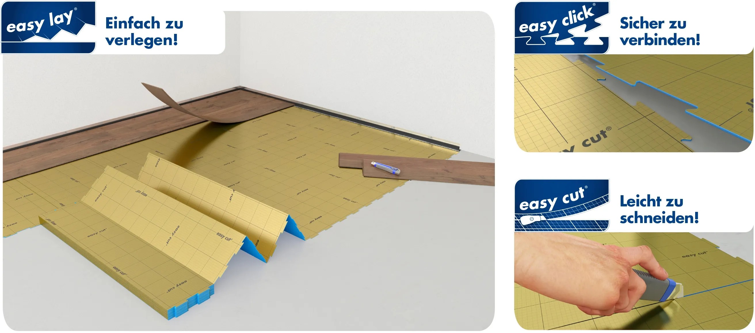 - Jednoduchá pokládka - inštaluje sa ako skladací panel, možno ľahko zrezať vďaka predtlačenej mriežke