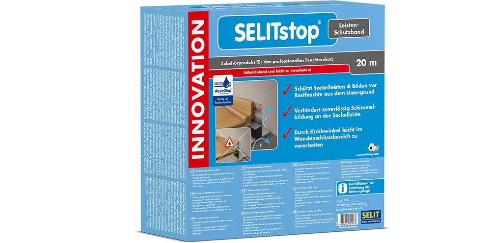SELITstop® ochranná páska na lišty chráni soklové lišty a podlahy pred stúpajúcou zvyškovou stavebnou vlhkosťou.